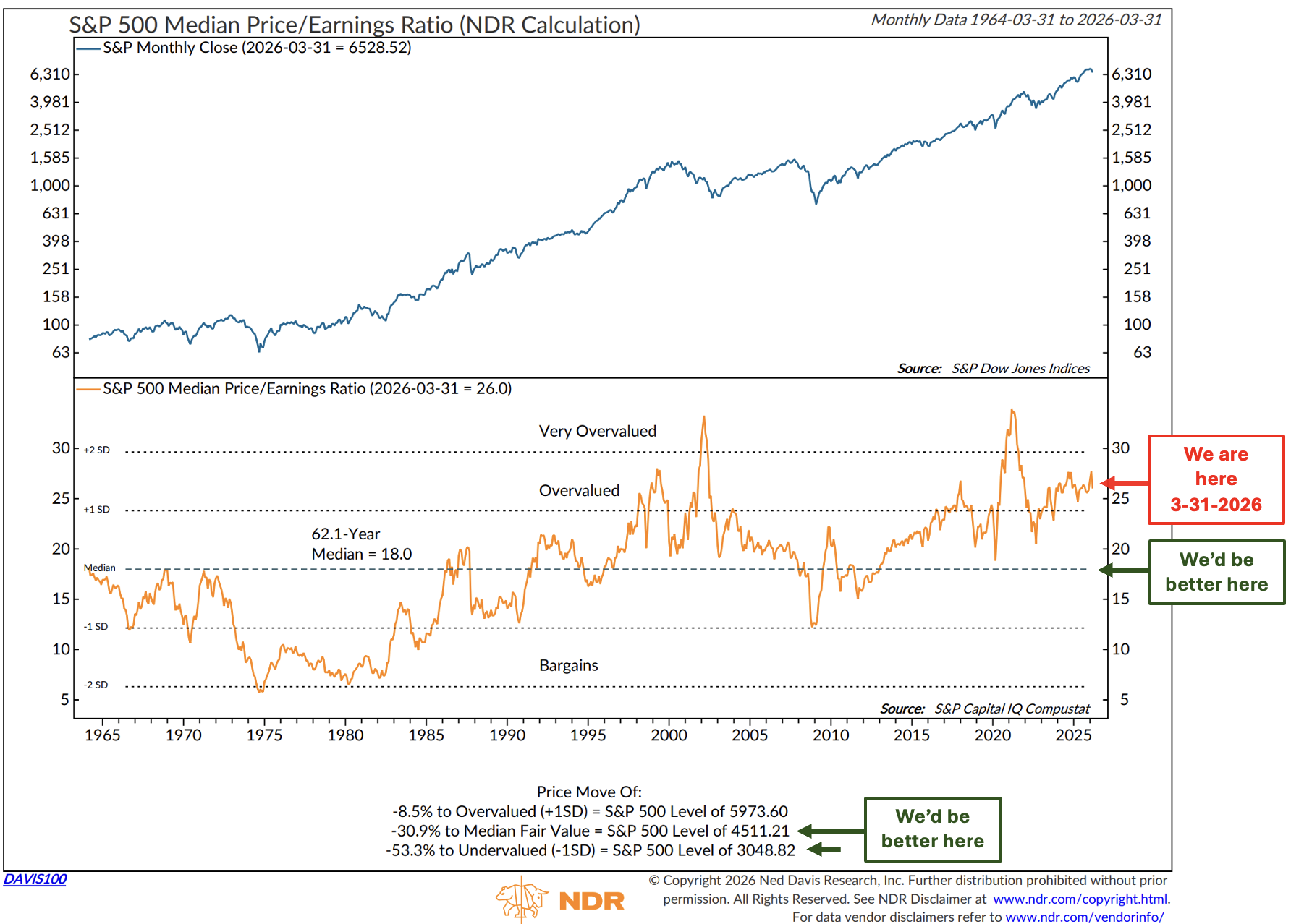 Bottom line: For traders, I see the current equity market environment as “sell the rallies” rather than “buy the dips.” While not perfect, the Weekly MACD does a good job at identifying the current trend. Fundamentally, I’ll be interested in the general equity market, with the S&P 500 “Median Fair Value” (based on Median PE) at ~4,500. Call that the “buy the big dip” entry target. That is about 30% below current levels. I share that chart again with you below.