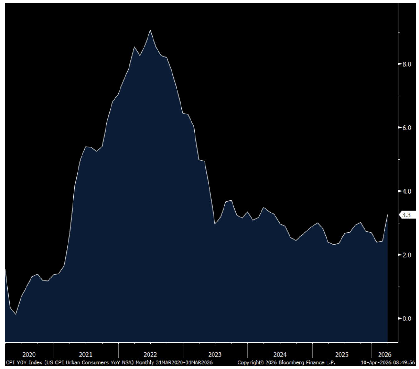 Consumer prices rose 0.9% month-over-month, in line with estimates, while inflation rose 3.3% year-over-year (vs. estimates of 3.4%), as reported by the US Bureau of Labor Statistics (BLS).