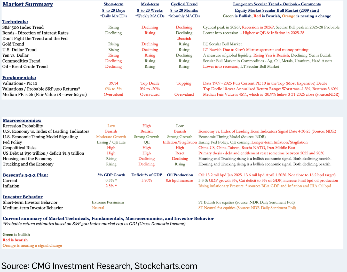 This document is prepared by CMG Capital Management Group, Inc. (“CMG”) and is circulated for informational and educational purposes only. There is no consideration given to the specific investment needs, objectives, or tolerances of any of the recipients. Additionally, CMG’s actual investment positions may, and often will, vary from its conclusions discussed herein based on any number of factors, such as client investment restrictions, portfolio rebalancing, and transaction costs, among others. Recipients should consult their own advisors, including tax advisors, before making any investment decision. This material is for informational and educational purposes only and is not an offer to sell or the solicitation of an offer to buy the securities or other instruments mentioned. This material does not constitute a personal recommendation or take into account the particular investment objectives, financial situations, or needs of individual investors which are necessary considerations before making any investment decision. Investors should consider whether any advice or recommendation in this research is suitable for their particular circumstances and, where appropriate, seek professional advice, including legal, tax, accounting, investment, or other advice. The views expressed herein are solely those of Steve Blumenthal as of the date of this report and are subject to change without notice.