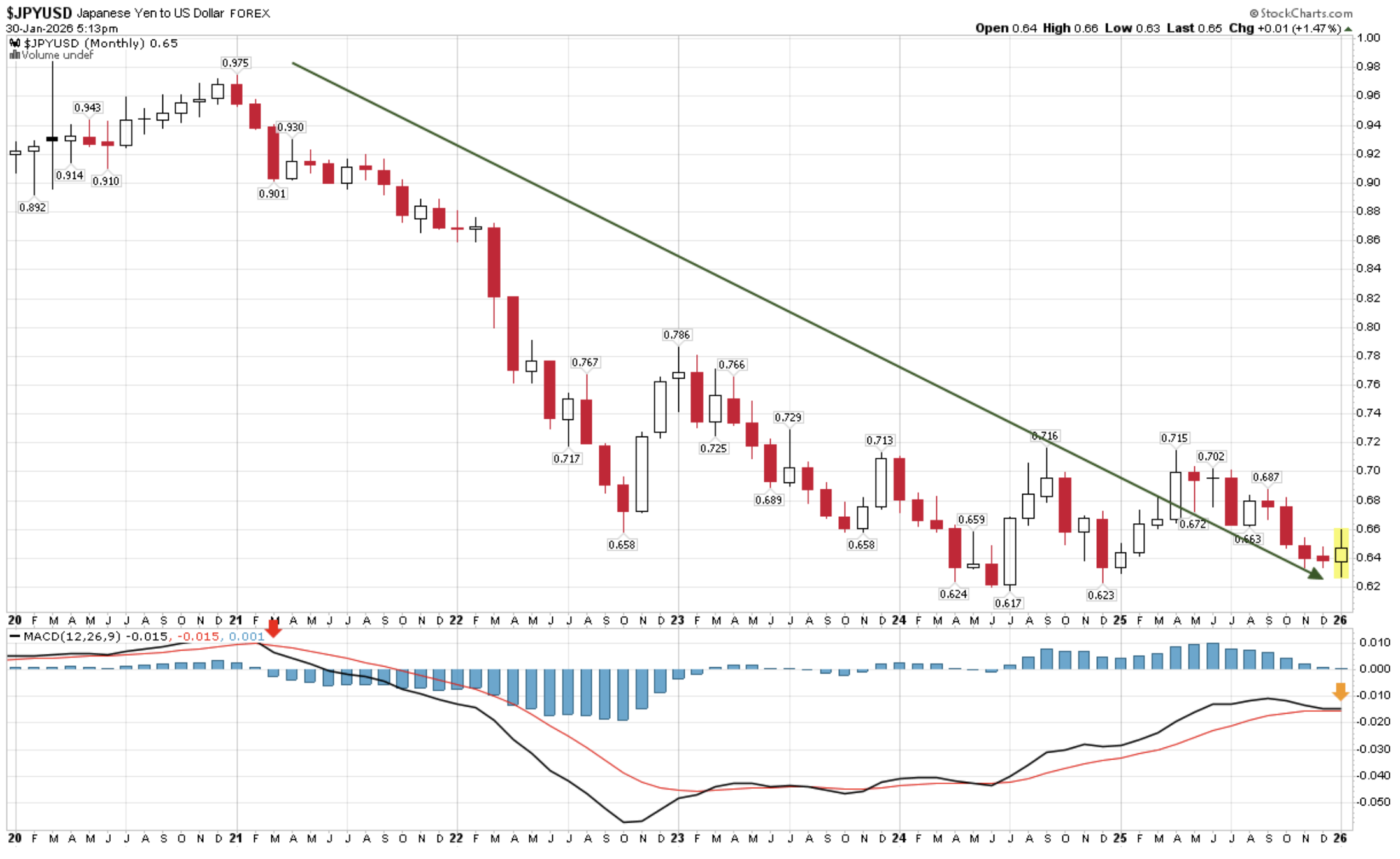 Instead, the yen continues to weaken, even as Japanese yields rise (charts below). That tells us something important.